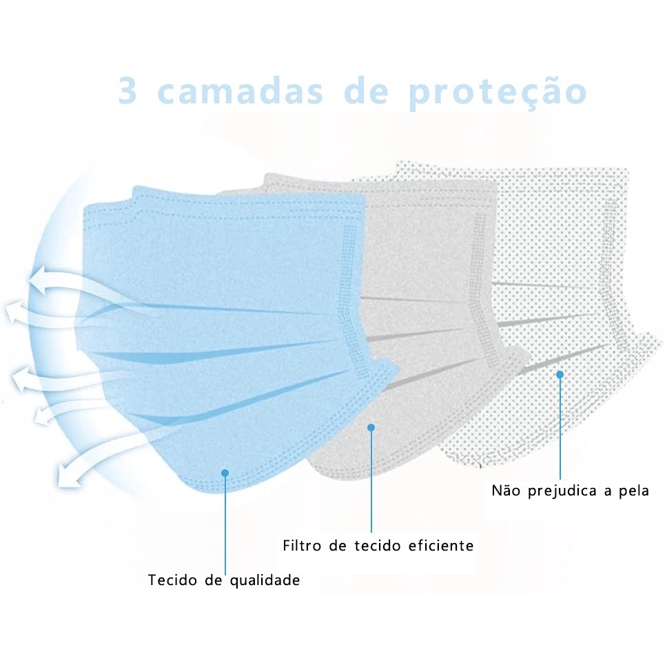 Kit com 50 Máscaras Descartáveis Tripla Camada