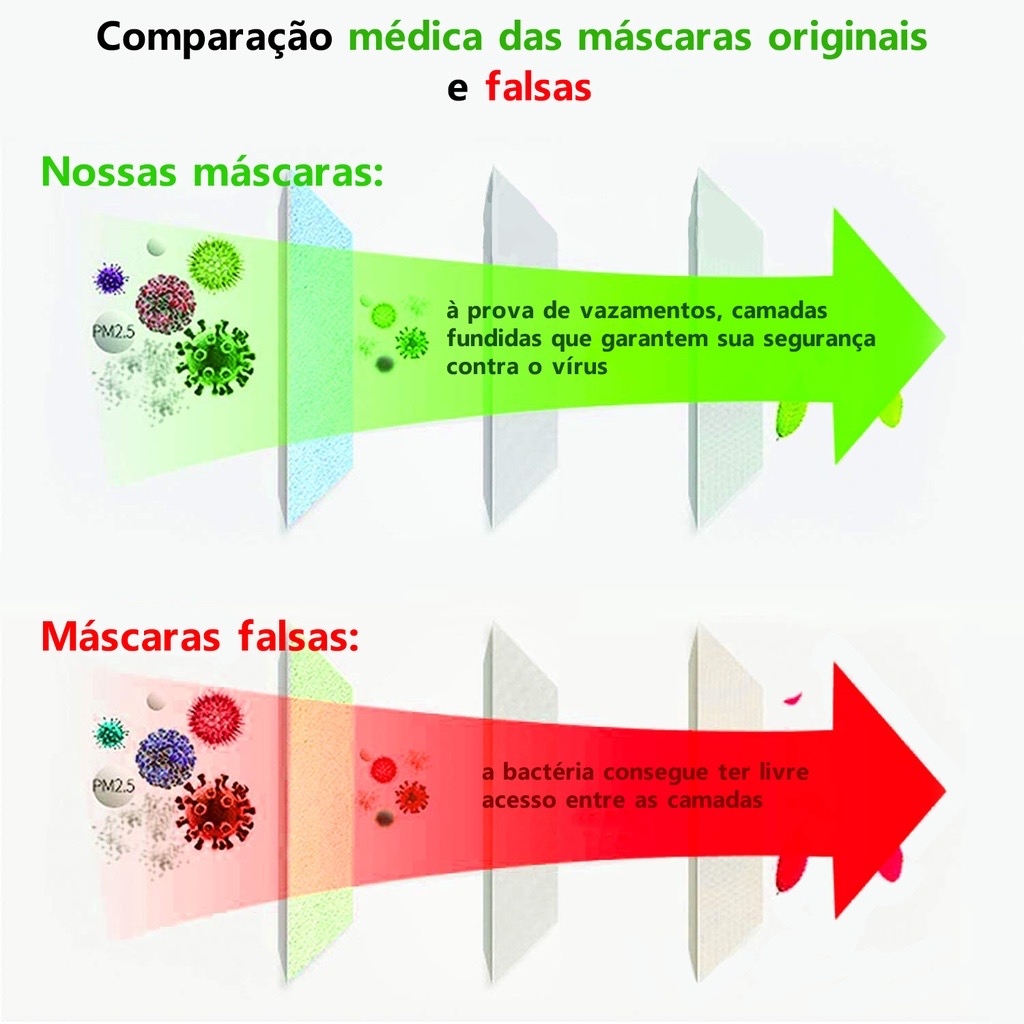 Modo de uso: - Lave as mãos antes de usar. - Ajuste o clip nasal para vedação perfeita. - Cubra boca e nariz sem deixar espaços. - Evite tocar a máscara durante o uso. - Descarte em lixeira fechada sem contato com a frente.